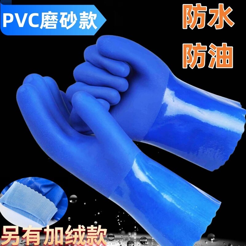 全浸塑杀鱼橡胶止滑劳保手套加厚全胶皮磨砂防水防滑工作耐磨防油