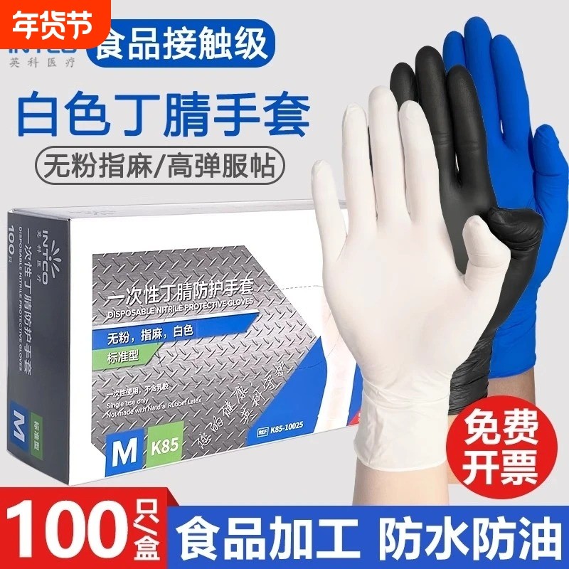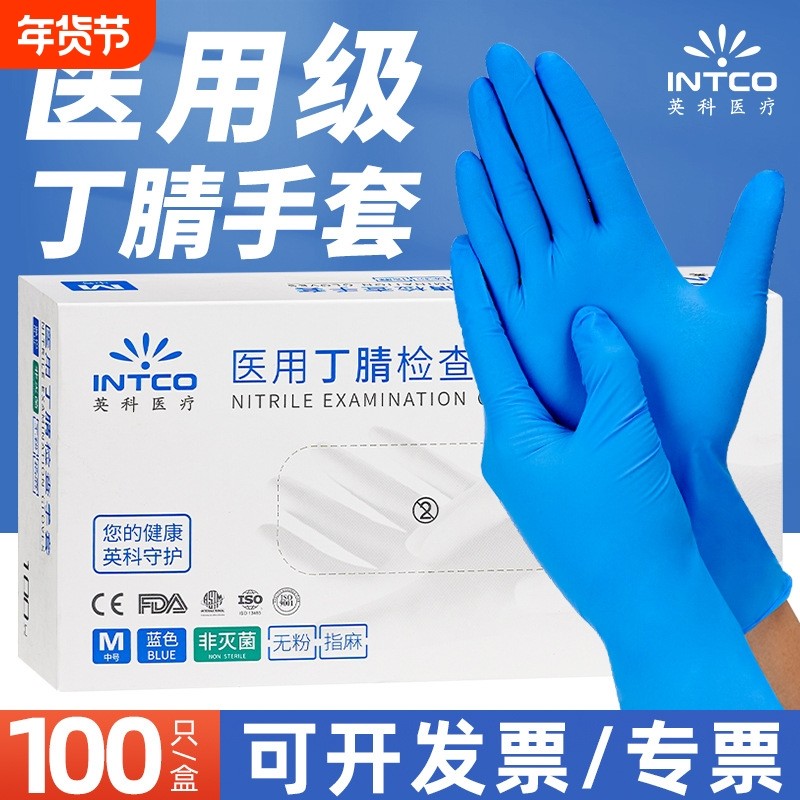 英科一次性医用白色丁腈手套橡胶加厚乳胶丁腈晴手套医生防水防护