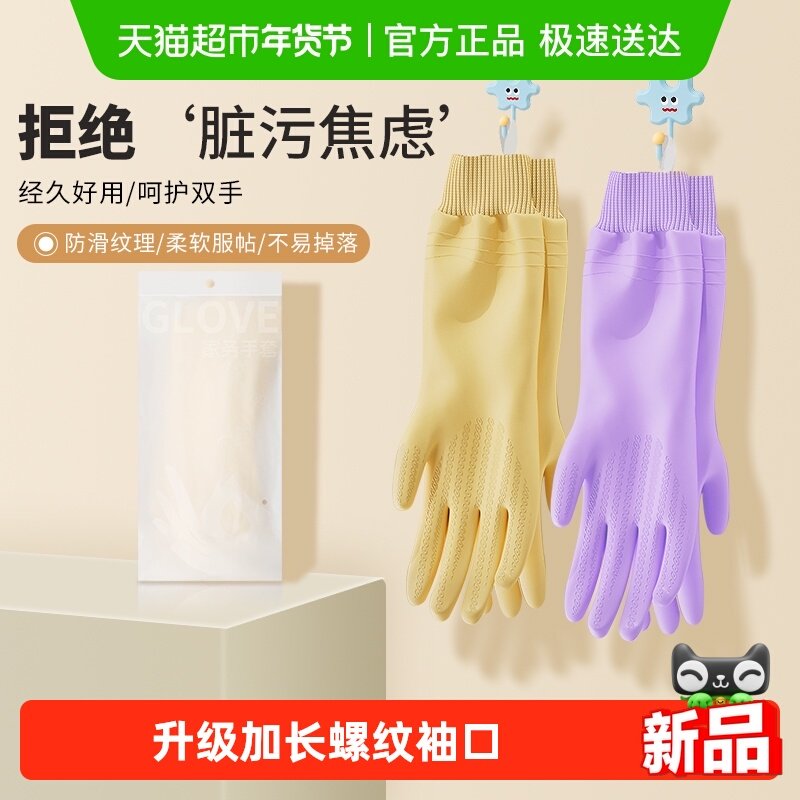 洗碗手套加绒加厚保暖加长款男女家务厨房耐用橡胶乳胶皮洗衣手套