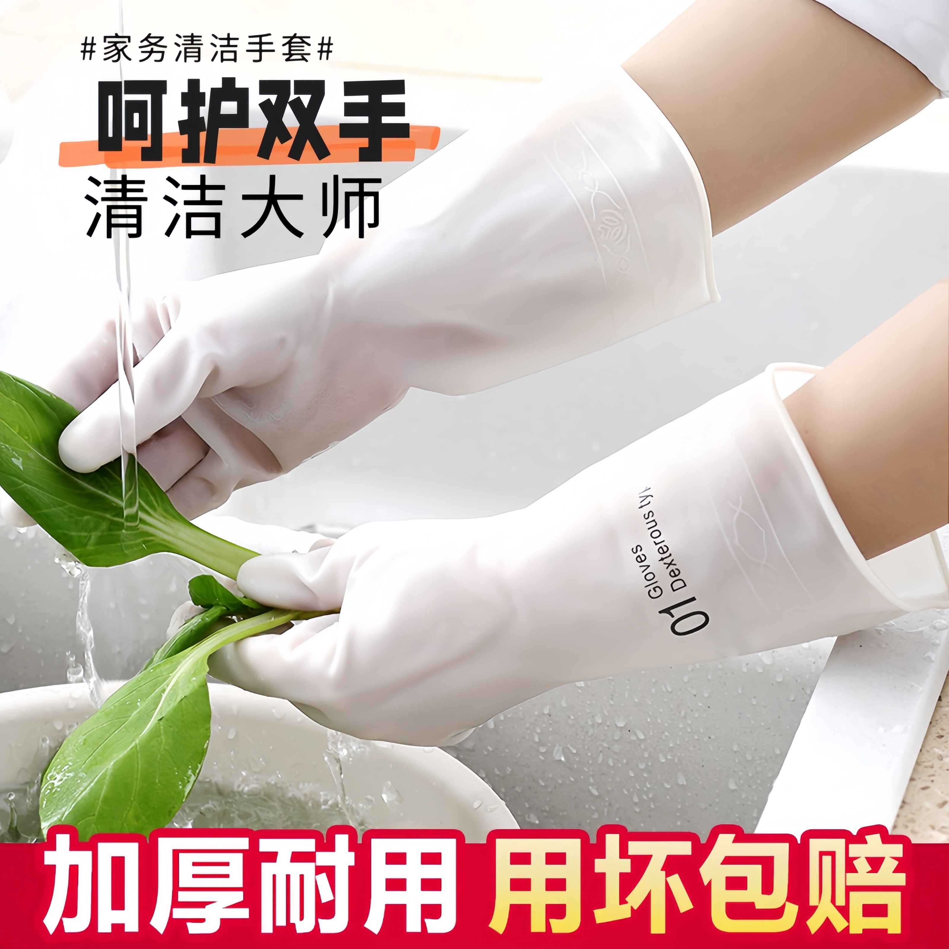 加厚橡胶牛筋乳胶手套家务女手套洗碗清洁家用干活洗衣服乳胶耐磨