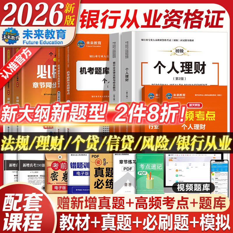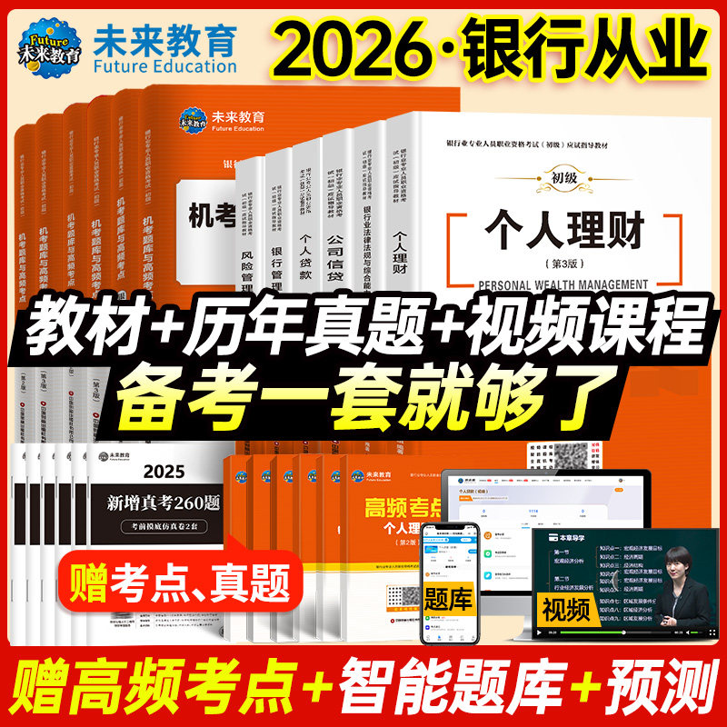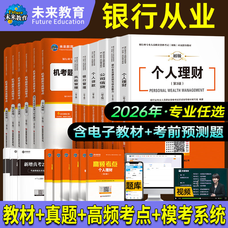 未来教育2026年银行从业资格证考试教材初级银行业法律法规个人理财公司信贷银行管理历年真题库密押试题试卷视频课程银从题库软件