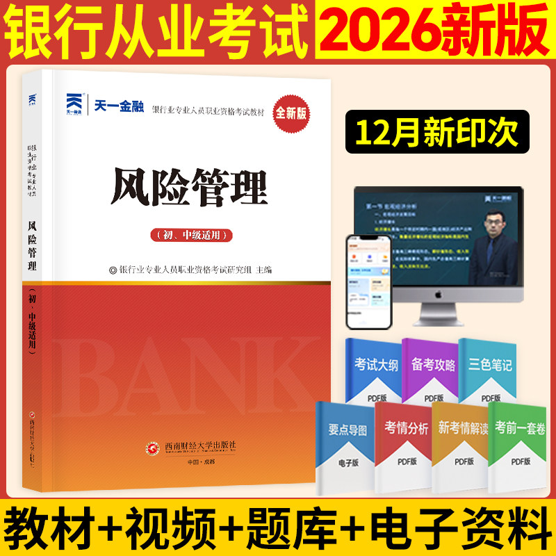 【天一金融教材】2026年风险管理(初级/中级适用) 银行业专业人员职业资格考试用书 银行从业考试银从银行员 可搭历年真题试卷题库