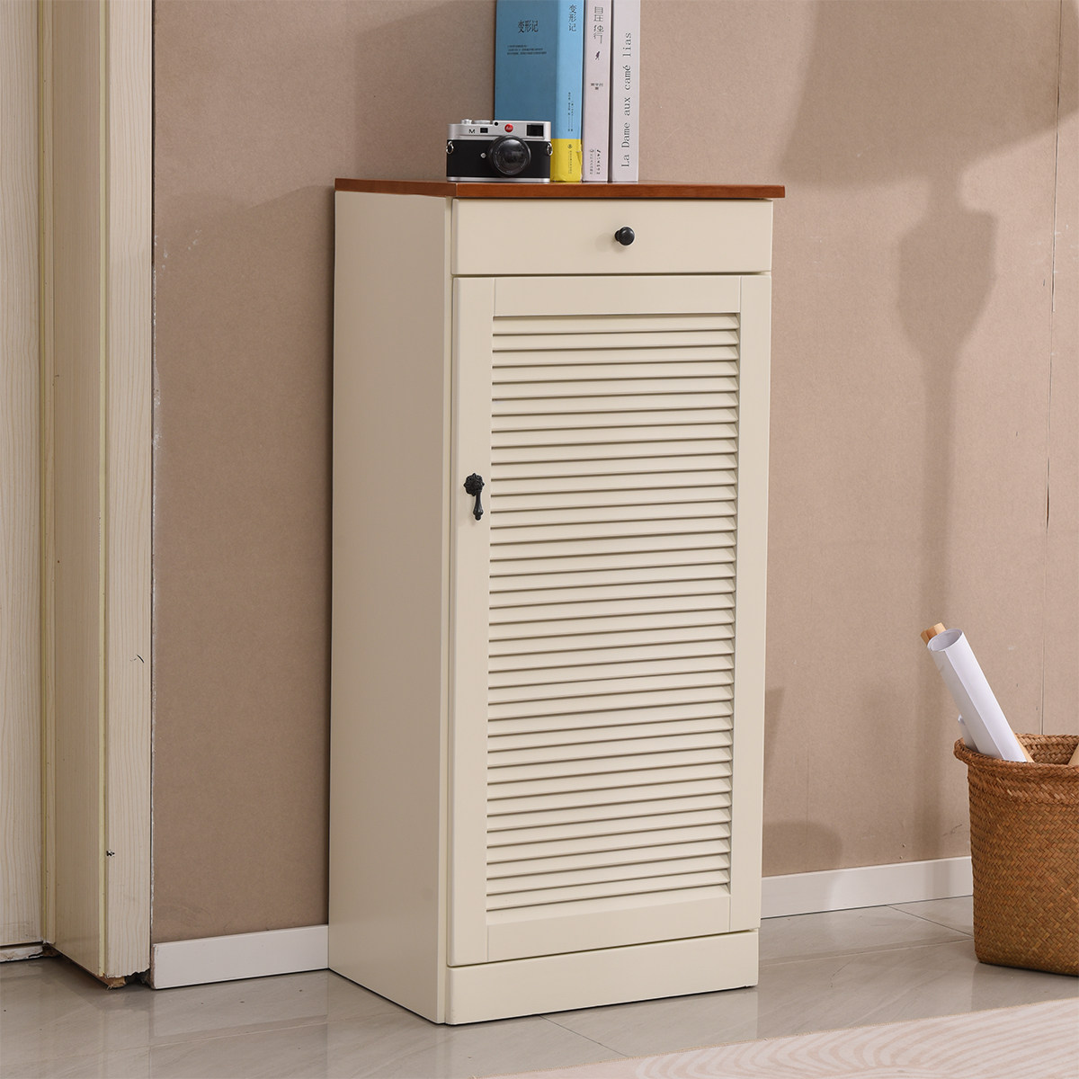北欧美式实木鞋柜门口夹缝家用进门转角电梯口储藏收纳柜单门鞋柜