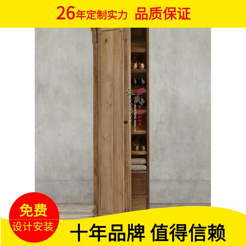 新中式美式实木鞋柜玄关电梯转角进门口单门鞋柜家用窄小加高立式