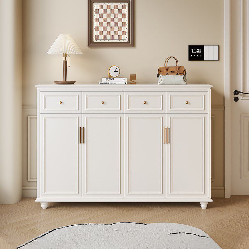 美式实木鞋柜奶油风白色简约鞋架大容量家用门口玄关柜法式收纳柜