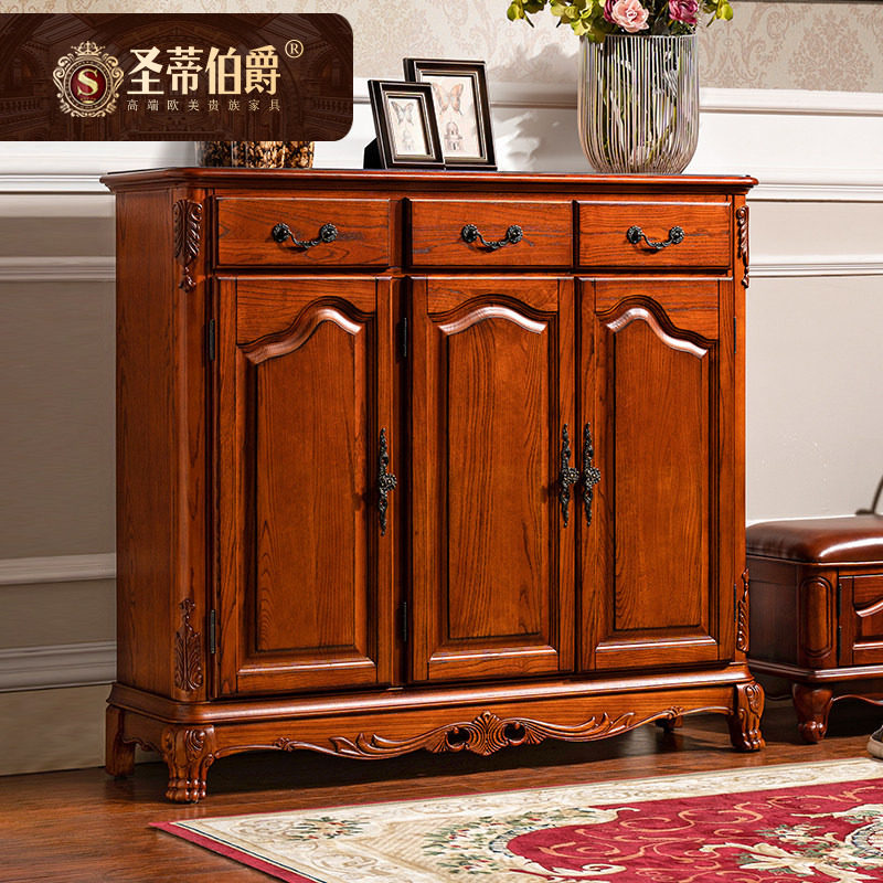 美式实木鞋柜客厅储物柜欧式复古隔断柜鞋靠墙边柜家用进门换鞋柜