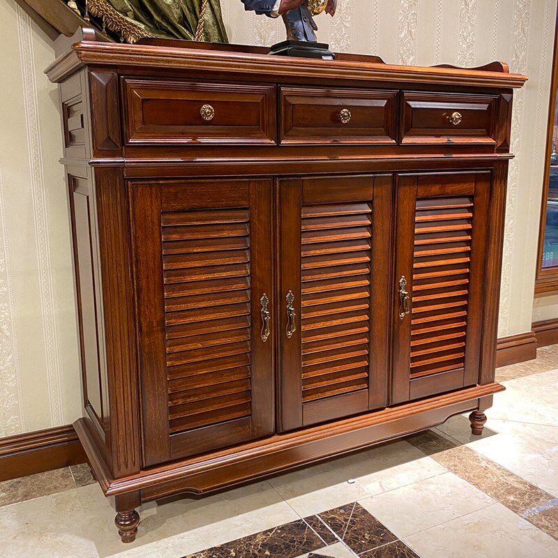 美式实木鞋柜家用门口大容量玄关收纳储物柜欧式复古百叶门隔断柜