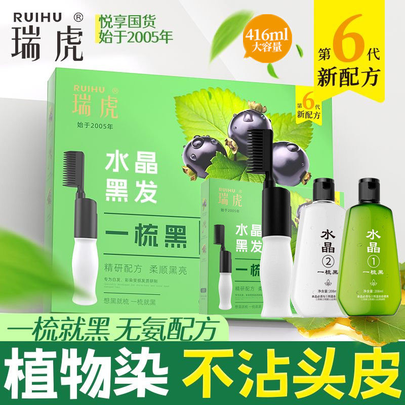 瑞虎染发剂清水一梳黑正品一洗黑染发膏纯植物正品自然黑不沾头皮