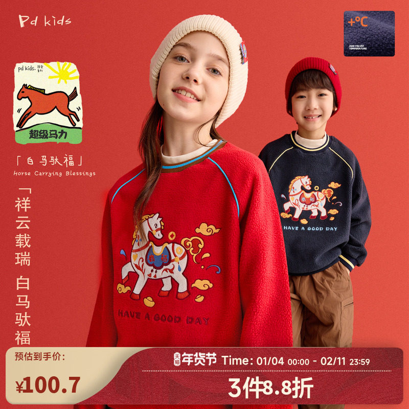 【超级马力】咕噜日记童装儿童马年绒衫卫衣男女童圆领长袖中大童