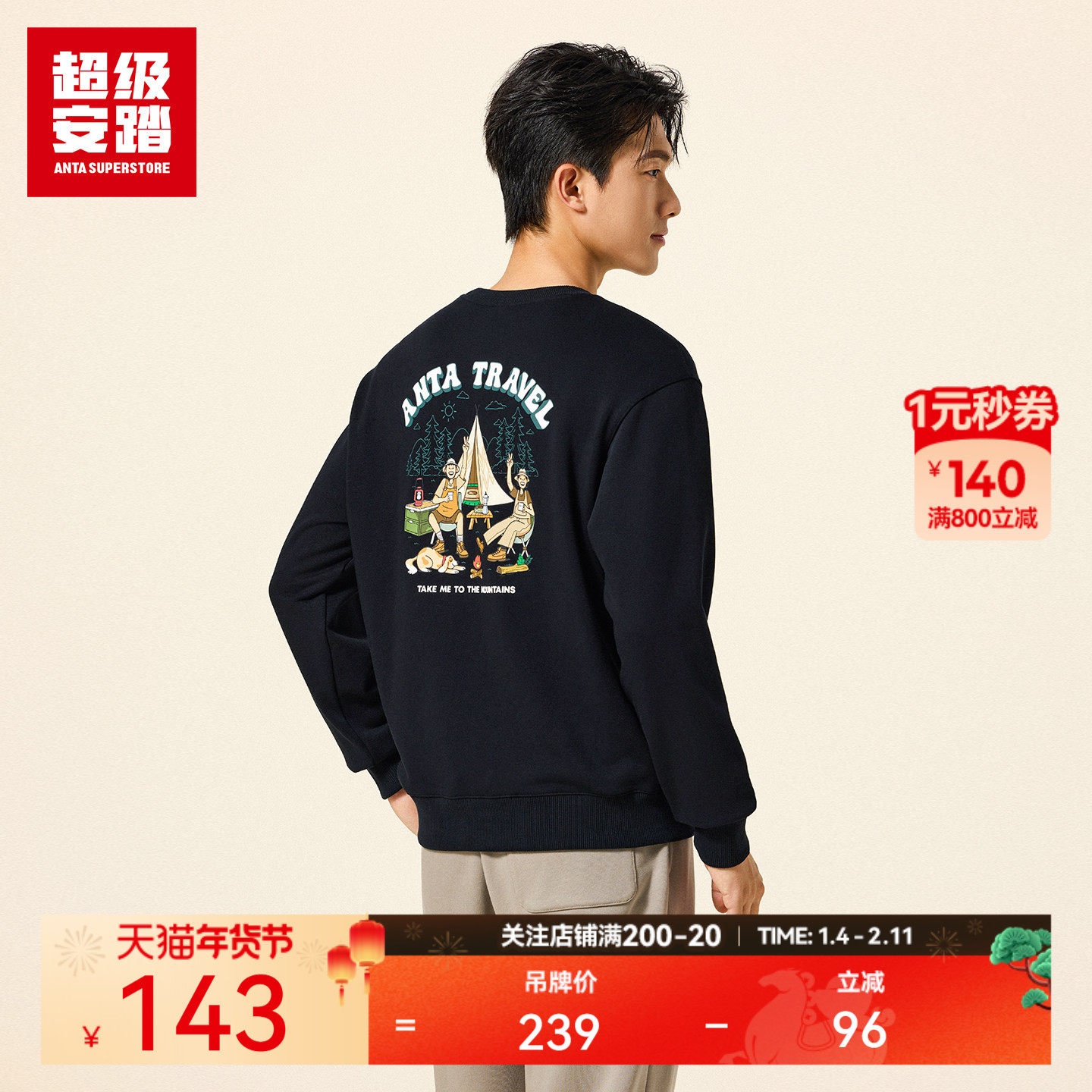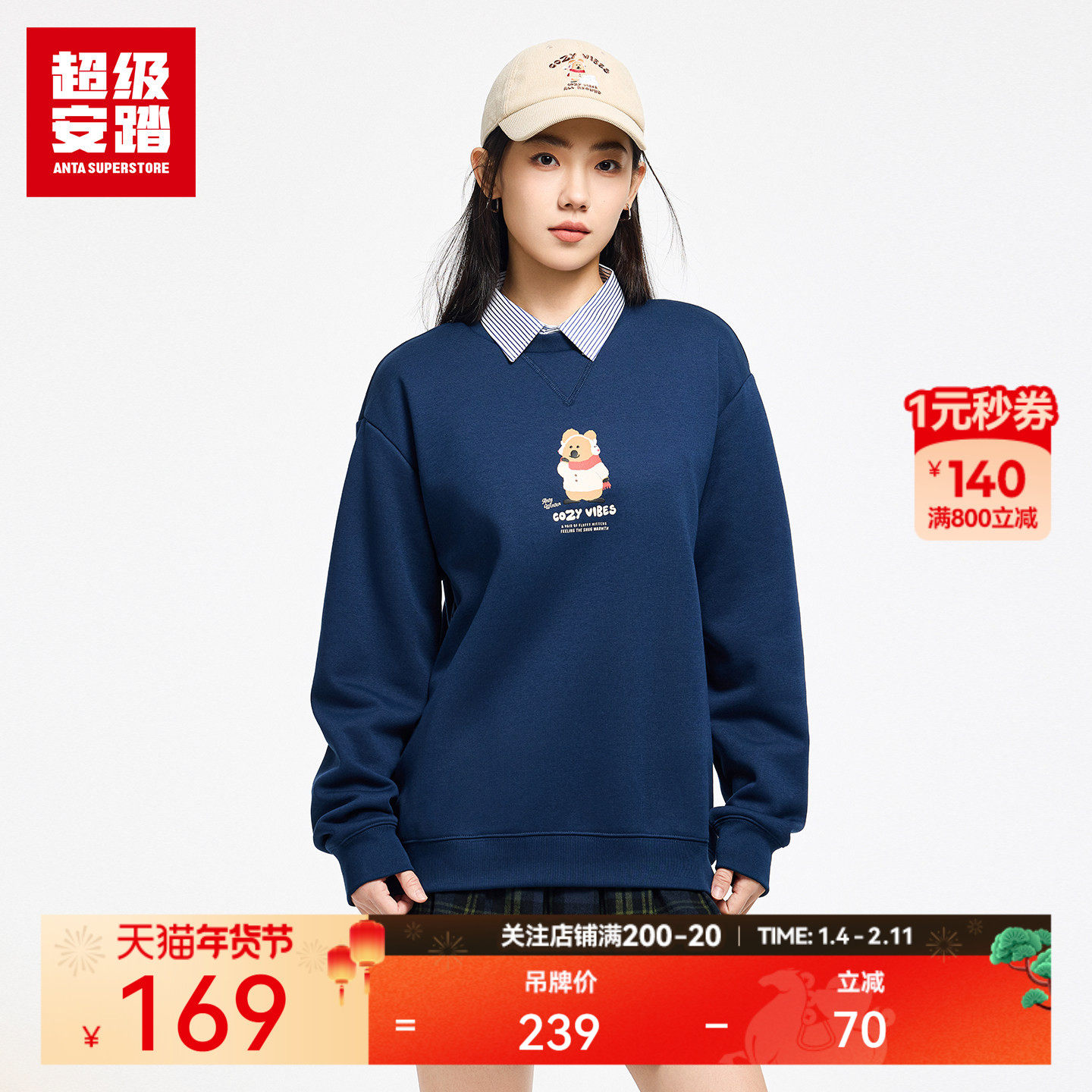 超级安踏 x 呆萌町联名 | 圆领卫衣男女休闲长袖套头衫172548714U