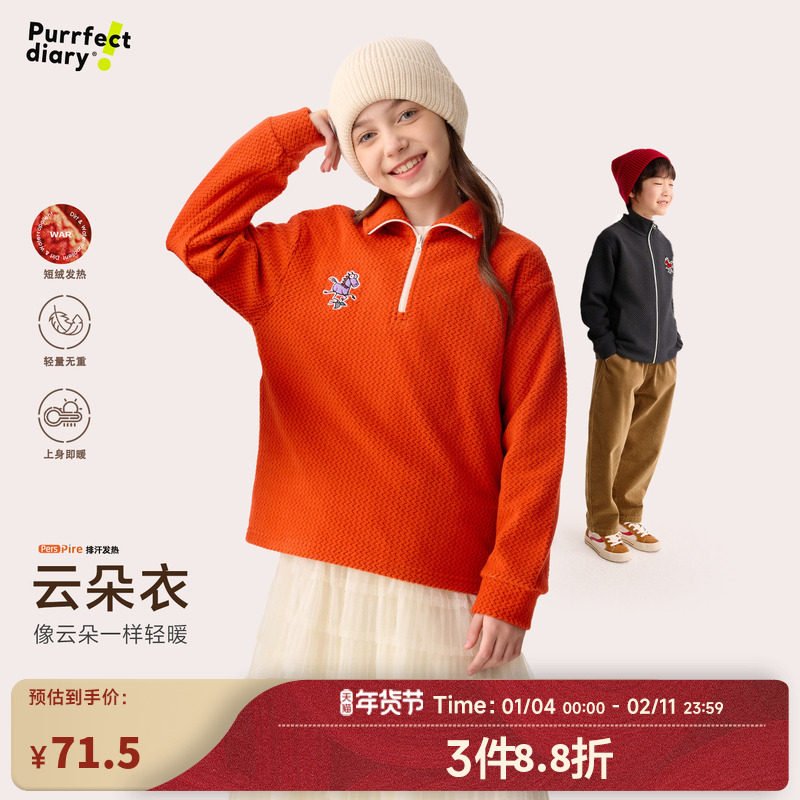 【超级马力】咕噜日记童装儿童翻领卫衣冬男女童保暖长袖休闲上衣