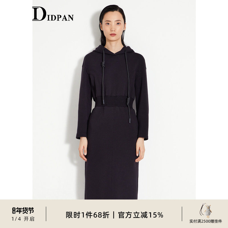 IDPAN女装冬季新款多巴胺穿搭超好看收腰连帽卫衣长袖连衣裙