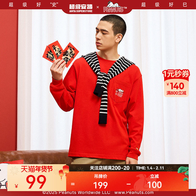 超级安踏SNOOPY联名 | 新年卫衣男女情侣款长袖T恤红色172518404U
