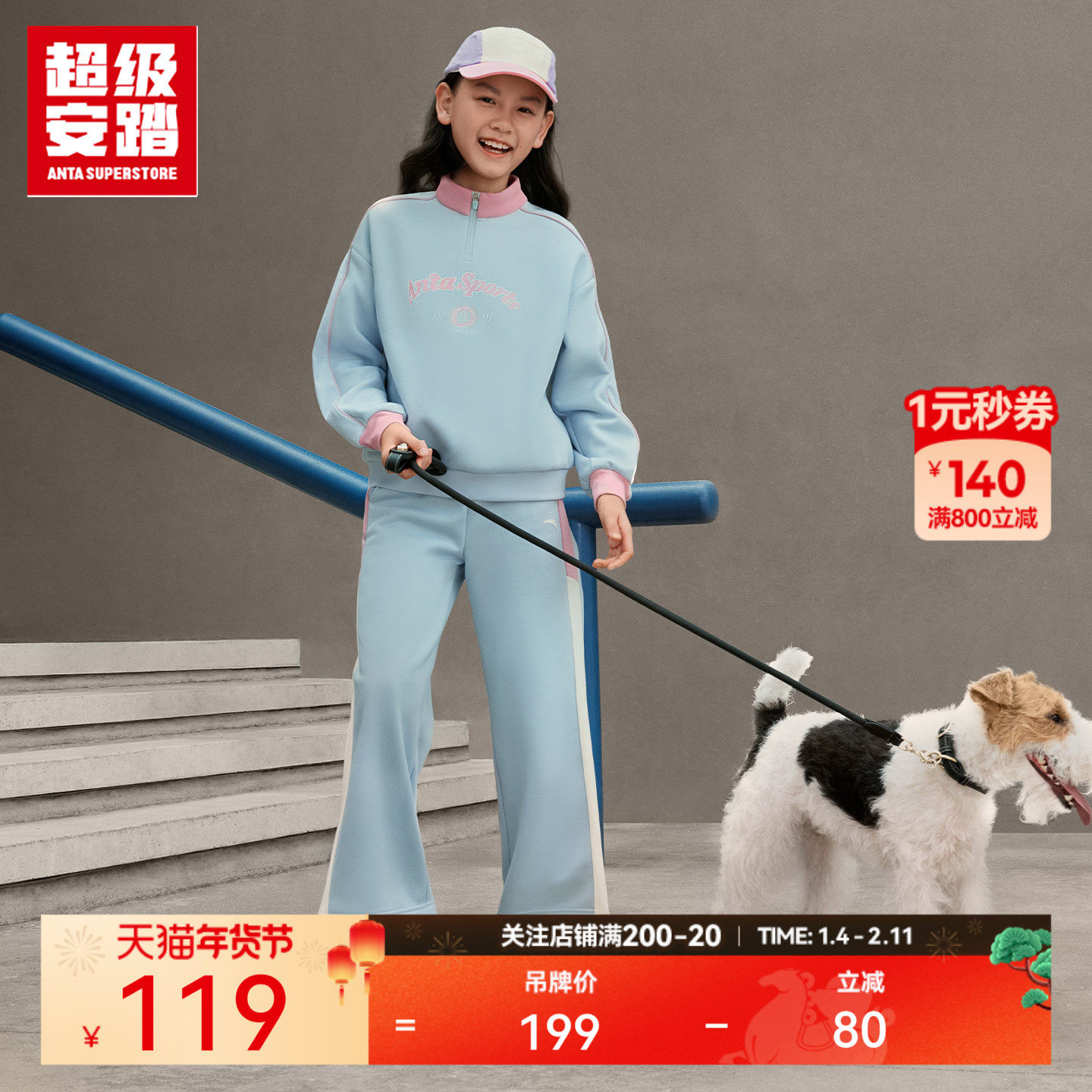 超级安踏姜暖暖 | 女童立领抓绒卫衣秋冬抗菌保暖长袖362547731U