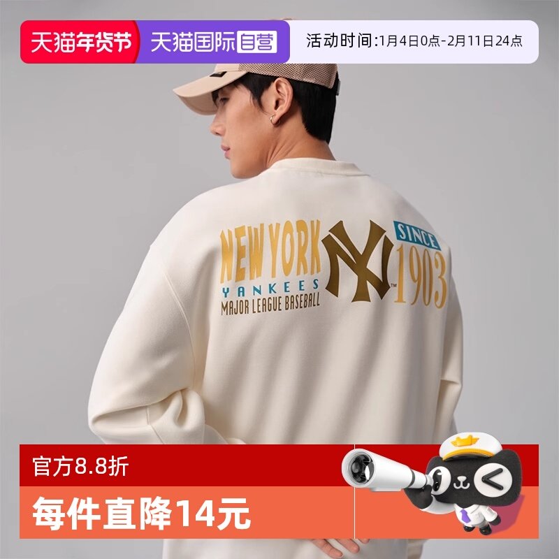 【自营】New Era纽亦华秋冬款MLB美式复古卫衣男女长袖套头衫印花