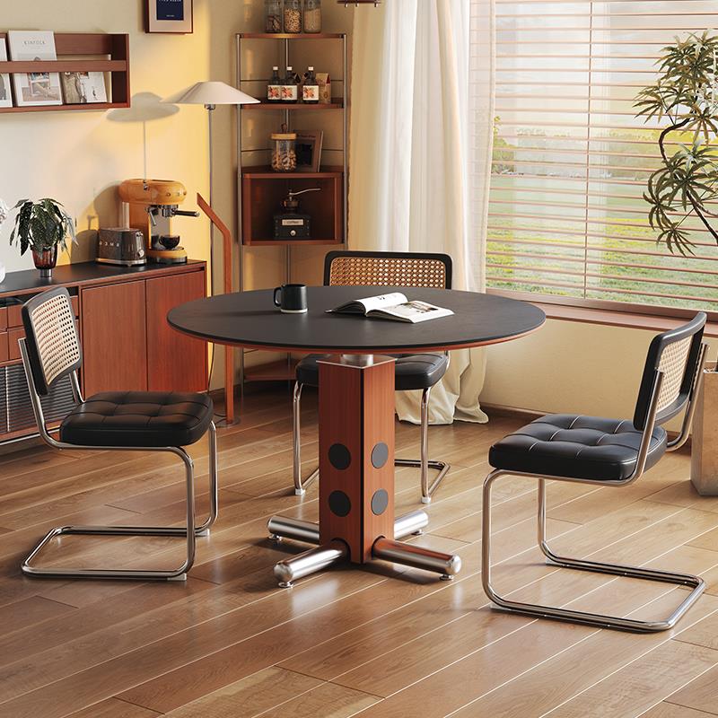 中古圆桌复古小户型不锈钢圆形洽谈桌餐桌北欧包豪斯实木岩板饭桌
