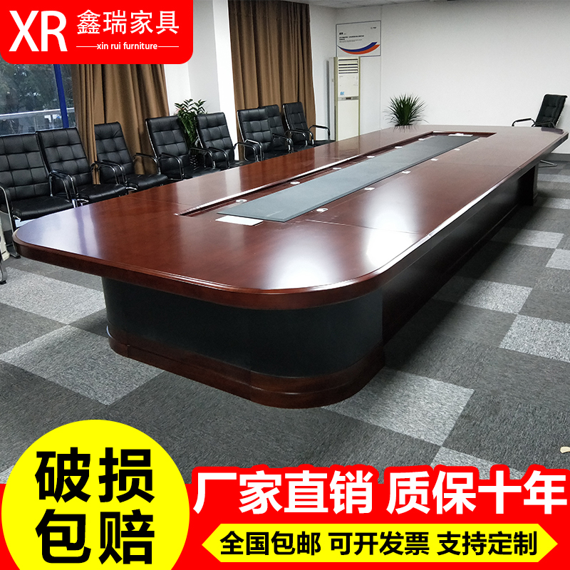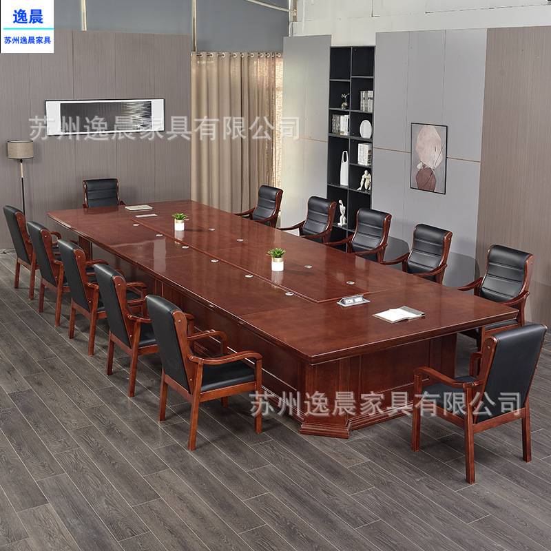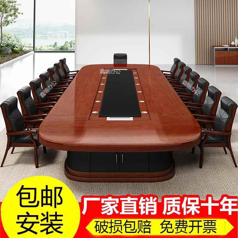 高档大型实木会议桌长桌办公桌子长方形会议室椭圆形洽谈桌椅组合