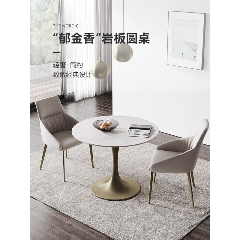 现代轻奢实木岩板餐桌客厅家用小户型餐厅大圆桌饭桌圆形洽谈桌子