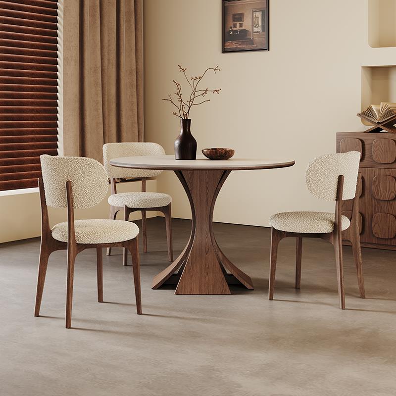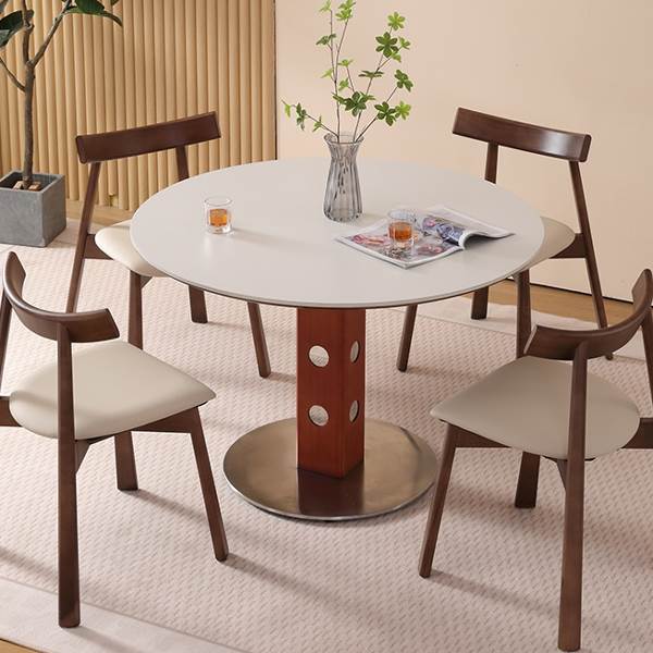 奥古斯特窈窕圆桌1米小户型家用圆形洽谈桌中古纯白岩板实木餐桌