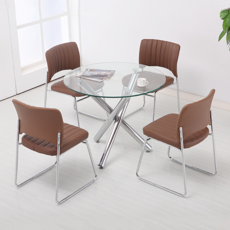 钢化玻璃小户型简约现代餐桌休闲接待大厅圆桌子圆形洽谈桌接待桌