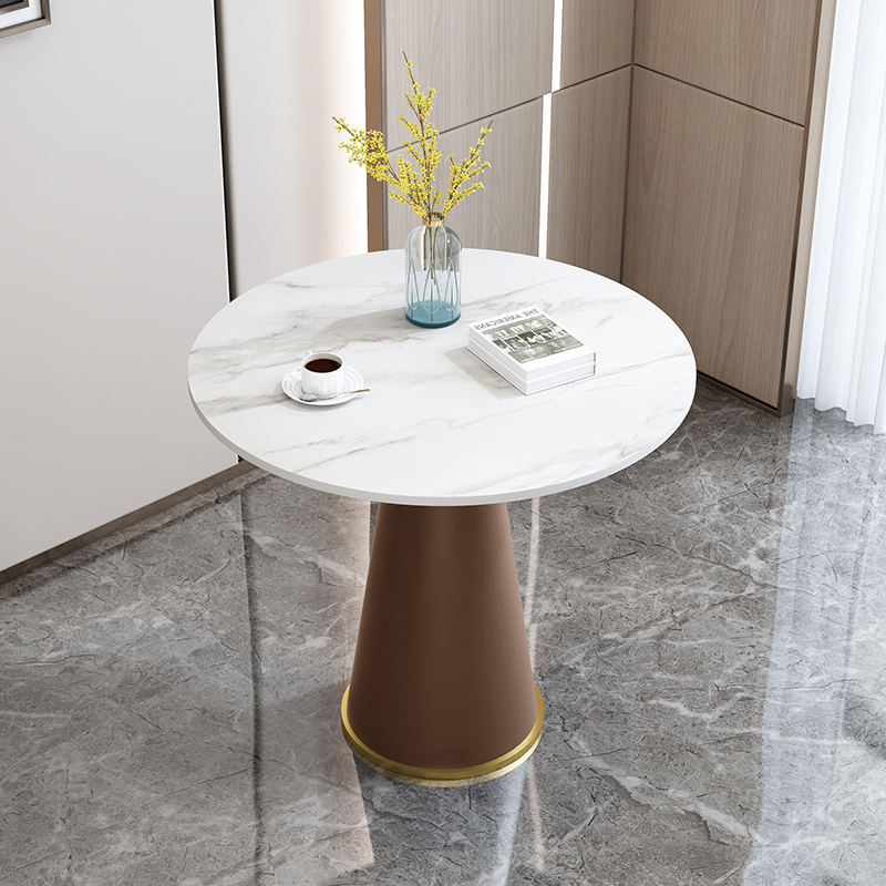 意式极简岩板餐桌家用小圆桌饭桌4S店圆形洽谈桌商用边几会客角几