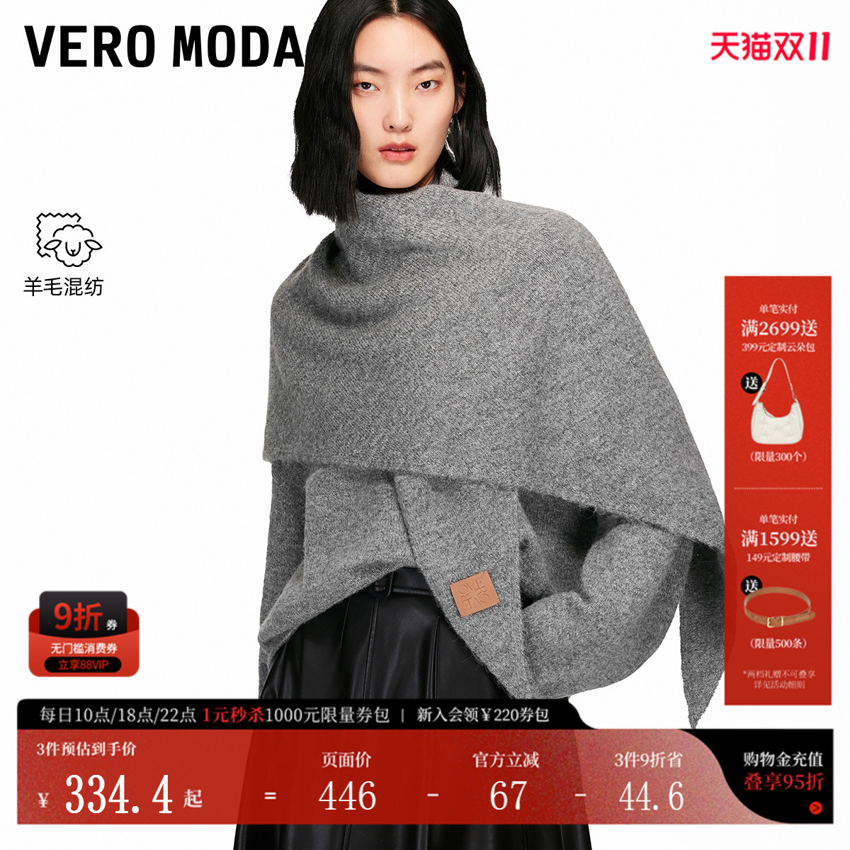 Vero Moda针织衫2025冬季新款含绵羊毛可拆披肩宽松圆领针织上衣