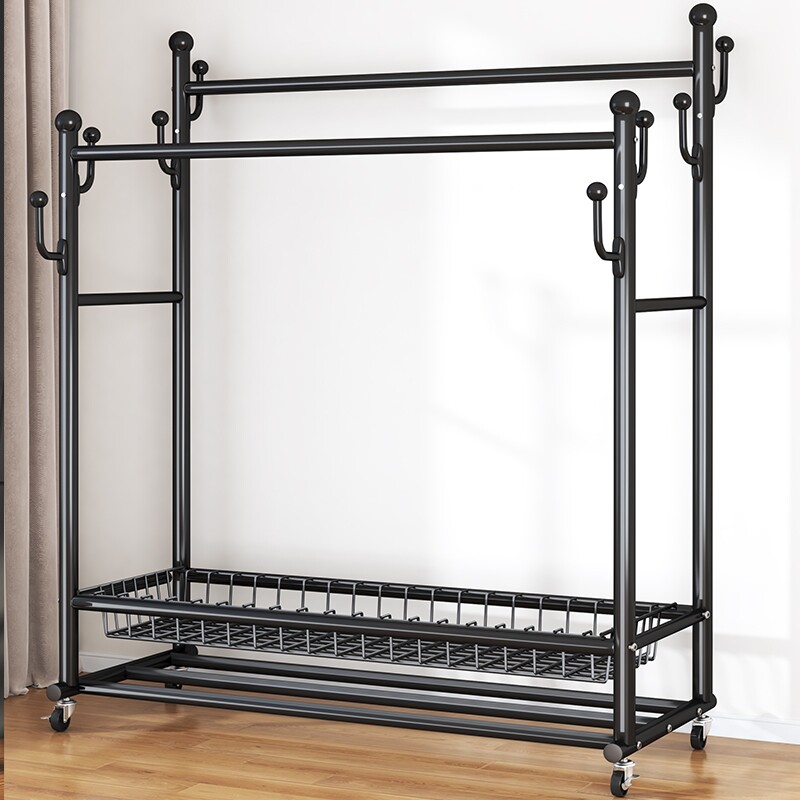晾衣架落地家用阳台可移动挂衣架多功能卧室加粗大容量衣服收纳架