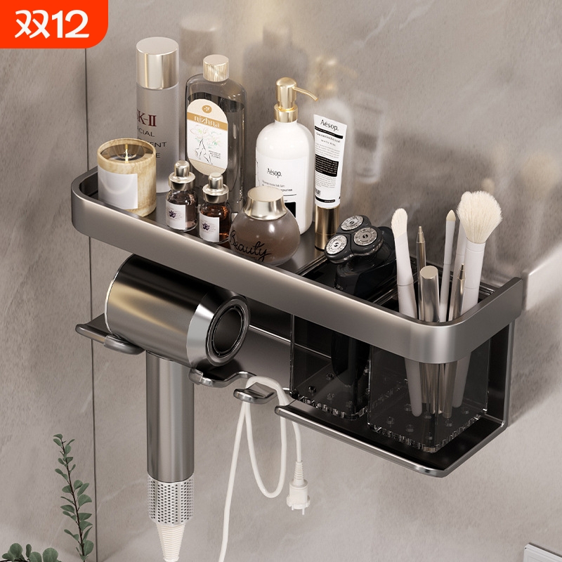 沐笙歌吹风机置物架免打孔卫生间太空铝枪灰壁挂式电吹风支架收纳