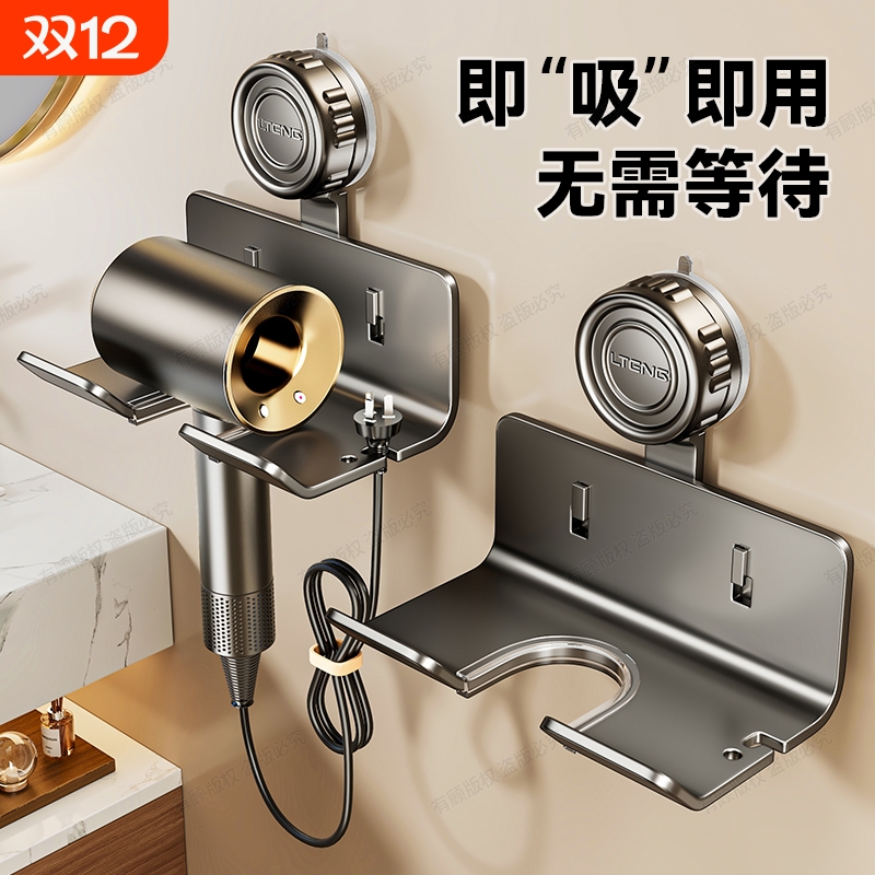 吸盘吹风机置物架免打孔卫生间电吹风挂架浴室壁挂式电吹风机收纳