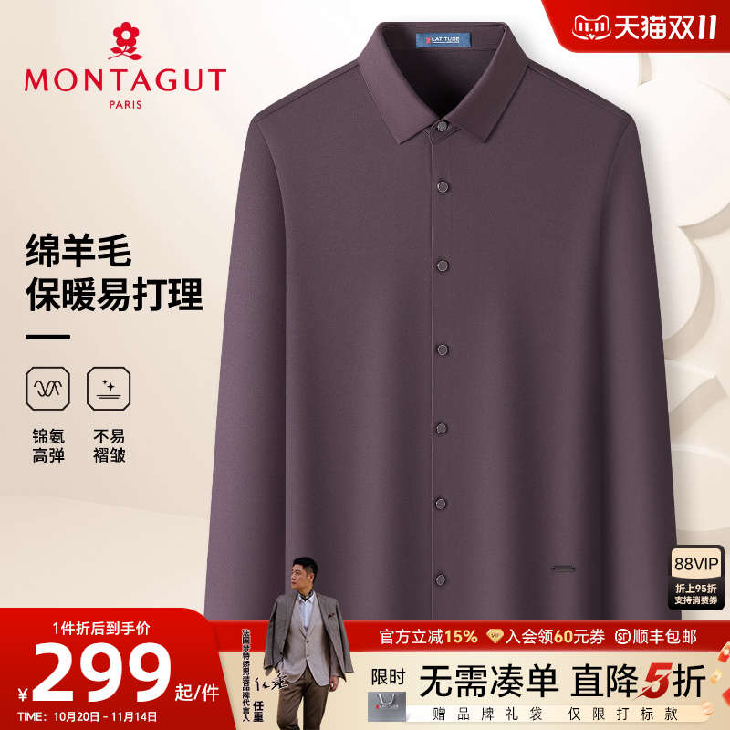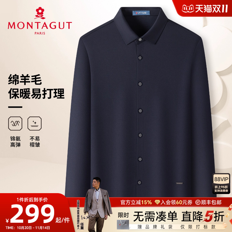 [羊毛抗皱]梦特娇男士羊毛衬衫25秋冬商务弹力中年长袖衬衣免烫J