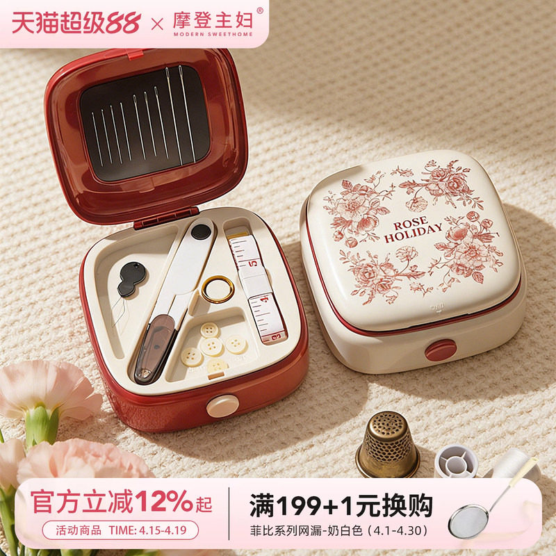 摩登主妇玫瑰假日针线盒家用结婚嫁妆红色磁吸缝补神器针线包套装