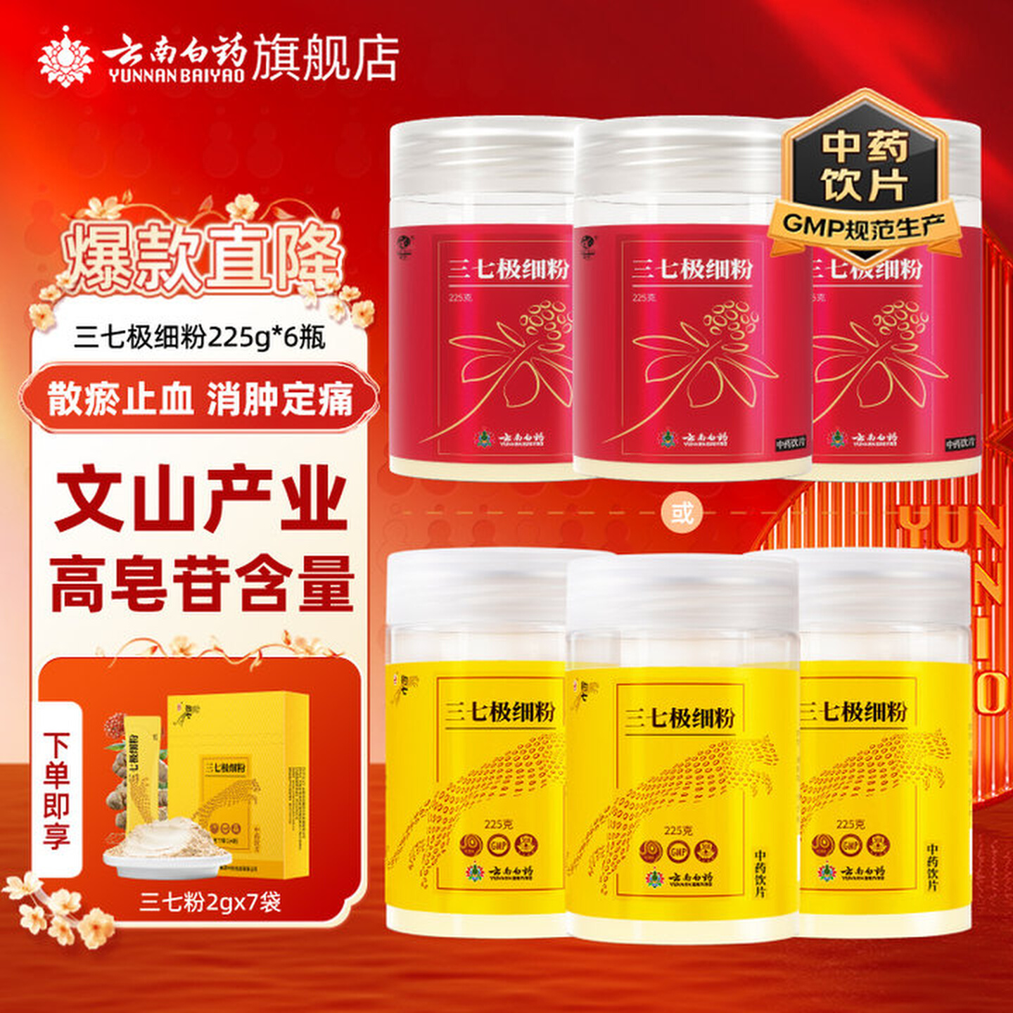 云南白药三七粉正宗云南文山三七头田七中药材打粉正品官方旗舰店