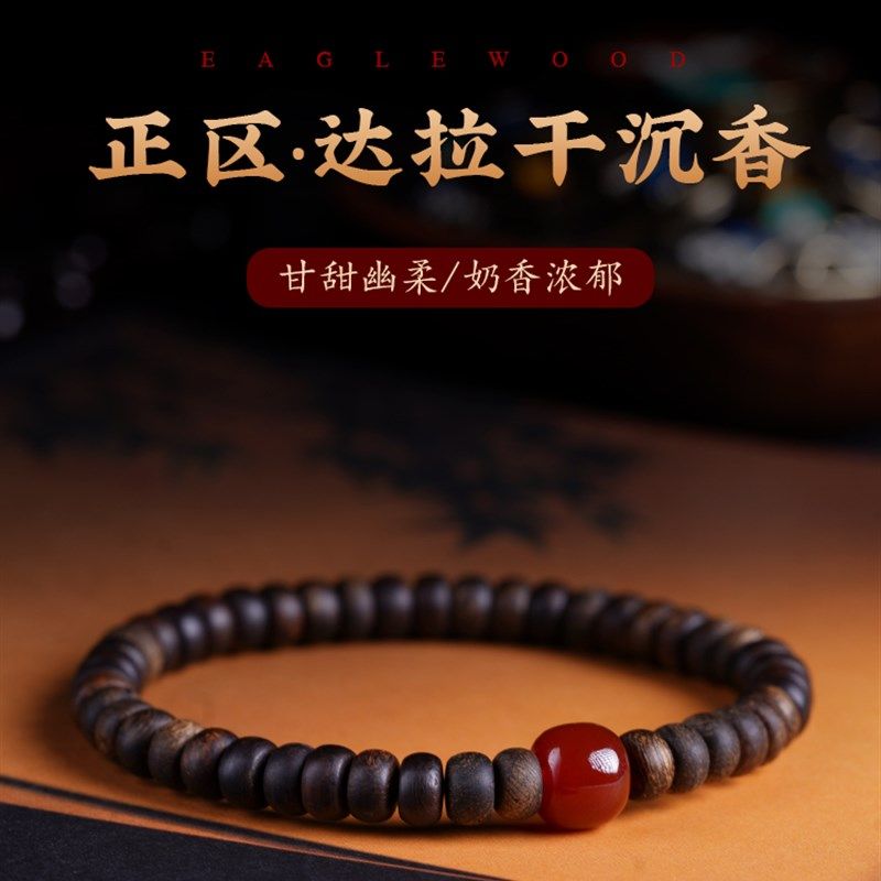 正区达拉干沉香手串保真老料算盘珠手链女男款文玩佛珠沉水级片珠