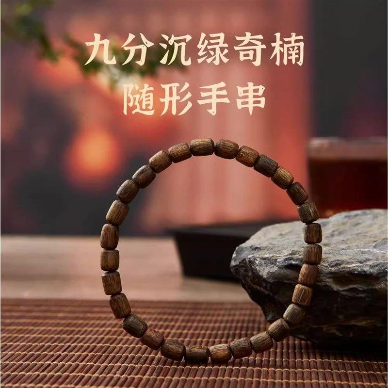 九分沉绿奇楠沉香手串保真棋楠素佛珠男女款木质随行手链静心安神