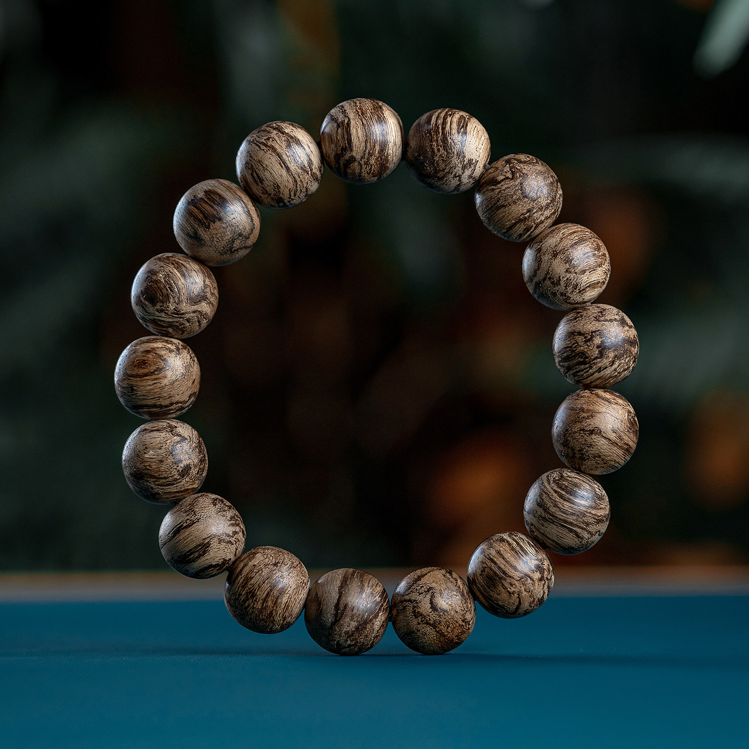 保真天然野生沉香达拉干虎斑纹高级文玩佛珠手串15mm男女款收藏品