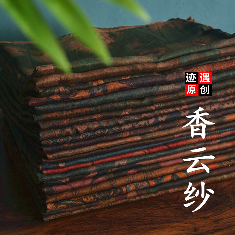 夏季棉麻布料薄高档提花面料复古旗袍布料亚麻布料连衣裙服装面料