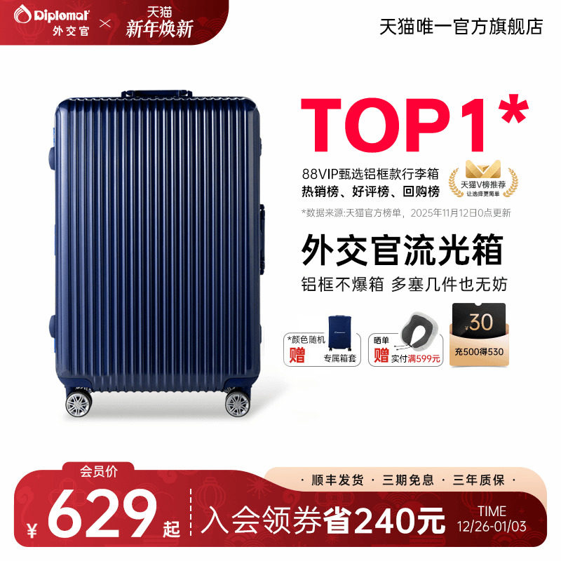 diplomat外交官行李箱流光拉杆箱登机箱旅行箱女铝框款20/28英寸