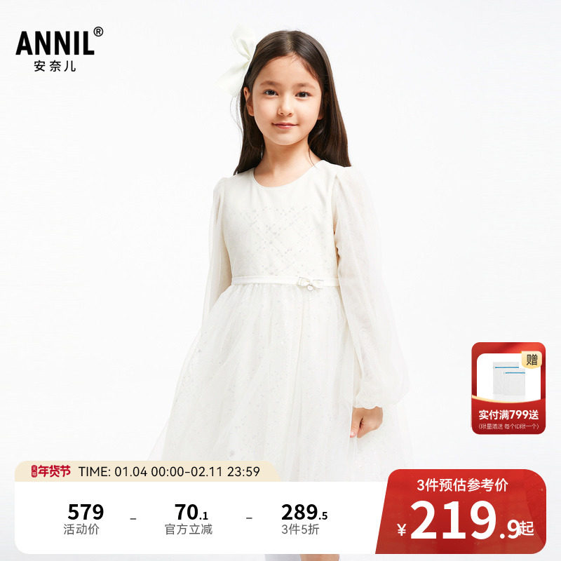 【商场同款】安奈儿童装女童长袖礼裙秋网纱甜美公主礼服AG433636