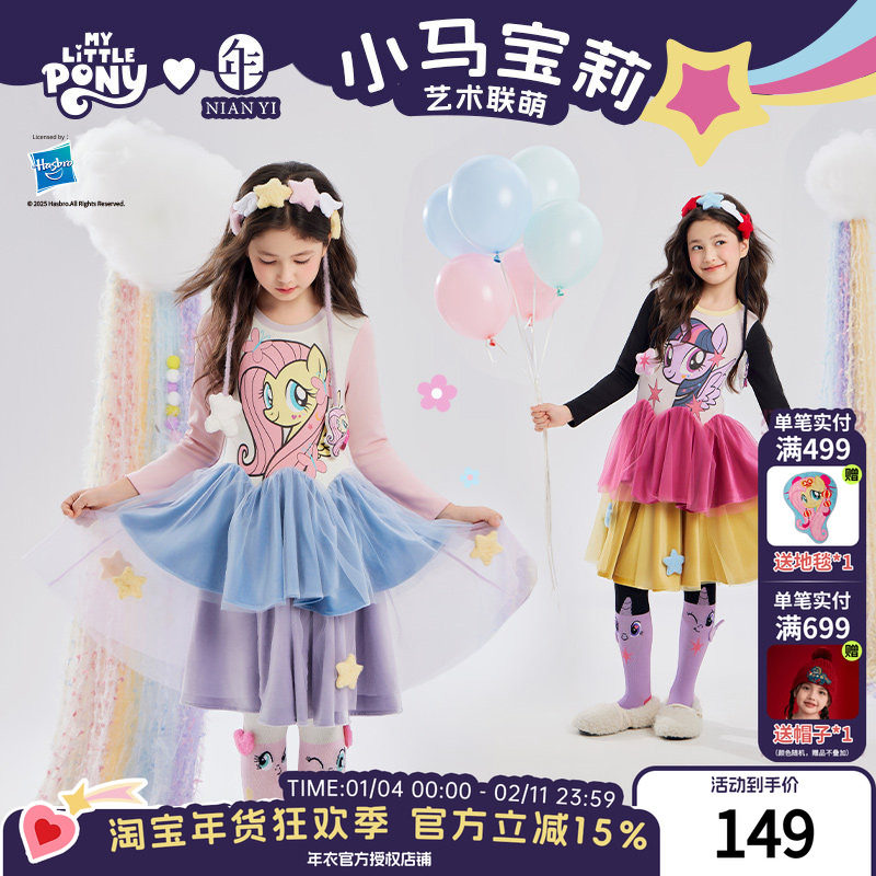 小马宝莉联名年衣童装公主裙秋冬新款女童可爱卡通长袖连衣裙礼服