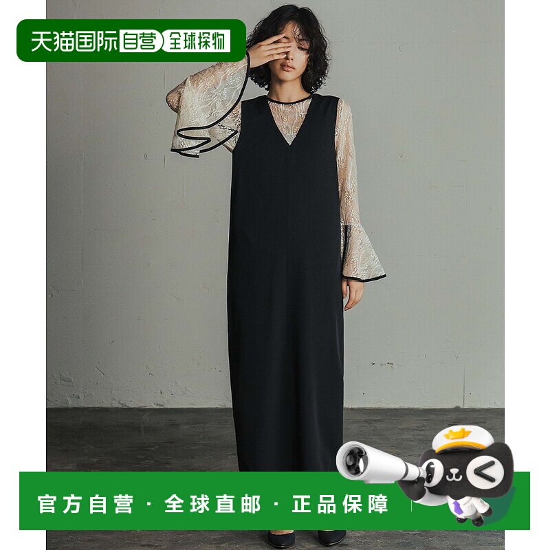 1h可退 日本直邮GIRL 女士蕾丝喇叭袖衬衫及V领连衣裙两件套长款