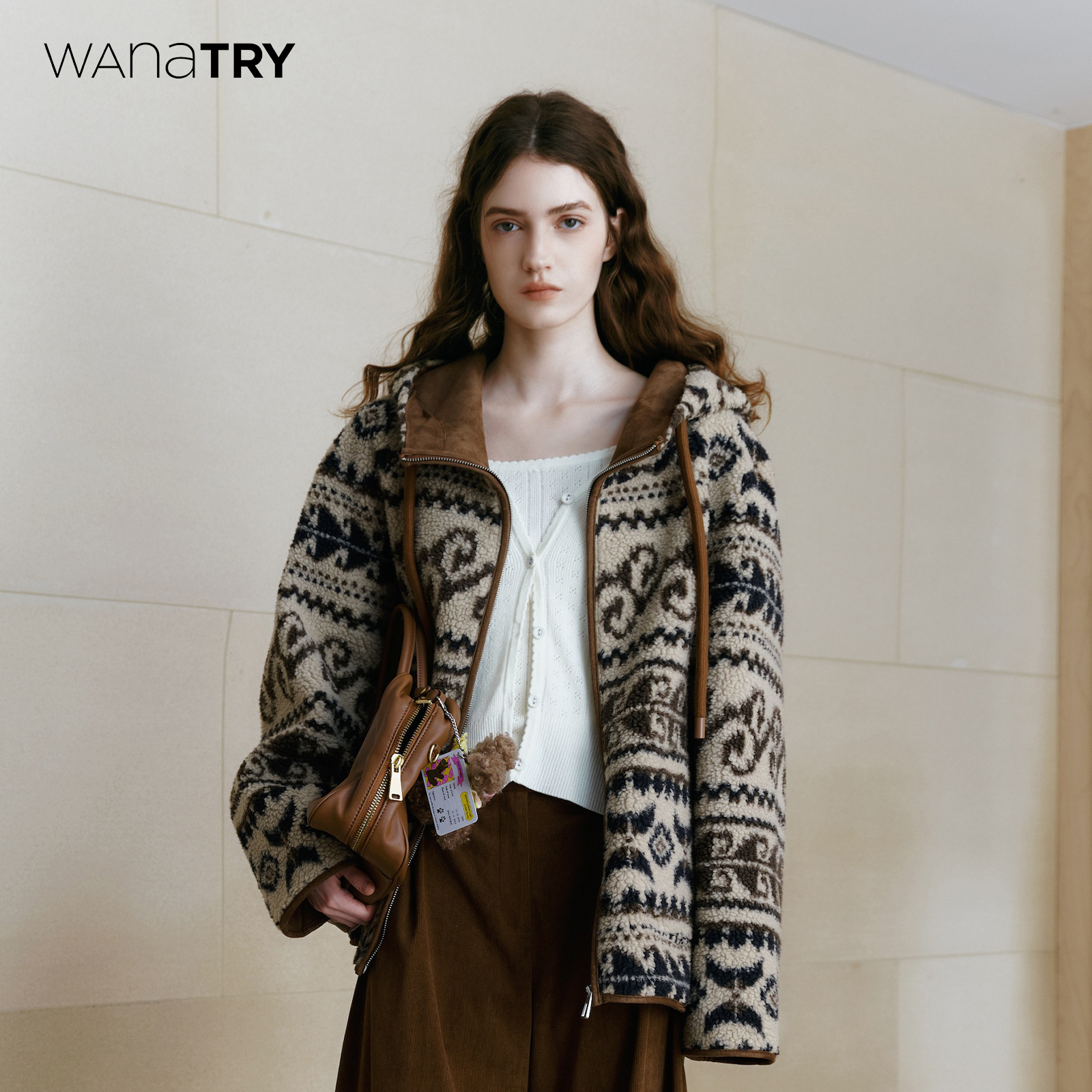 wana try游牧风柔软毛绒外套2025秋季新品印花休闲拉链毛衣上衣女