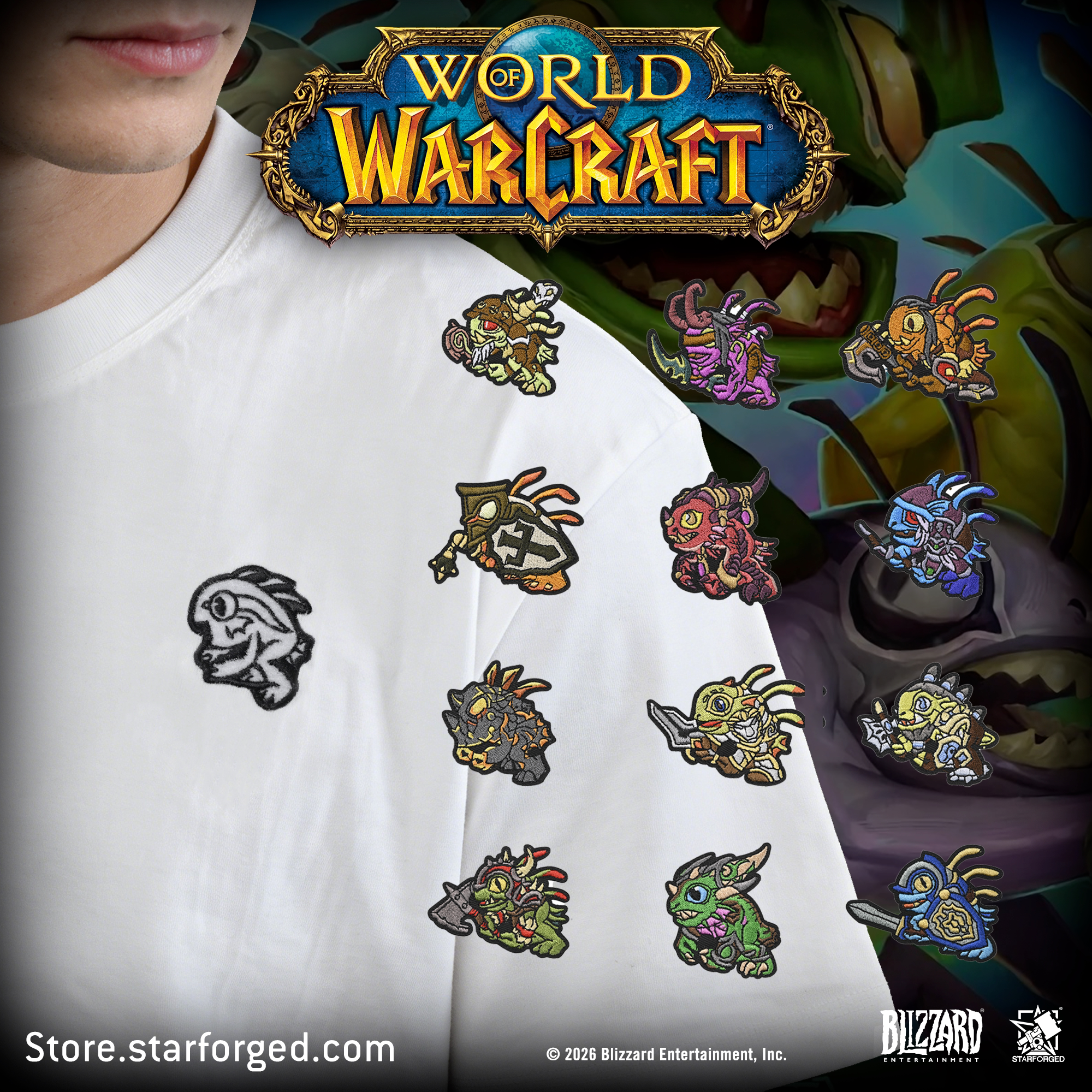 Starforged星辰铸造 魔兽世界游戏周边纯棉短袖T恤鱼人刺绣魔术贴