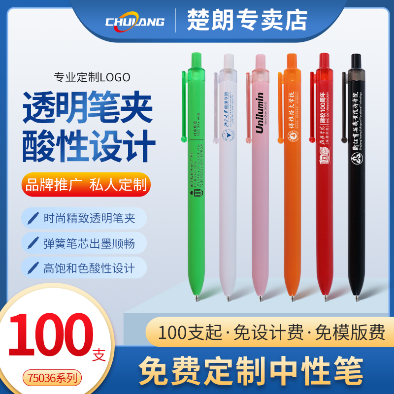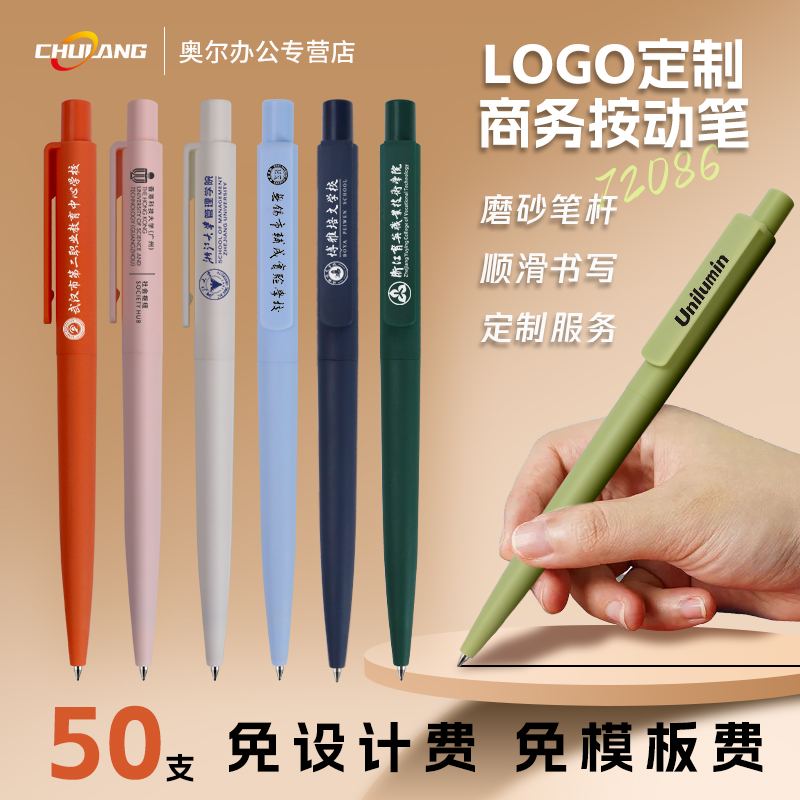 【免定制费】100支按动式广告笔定做定制企业logo按动中性笔一体