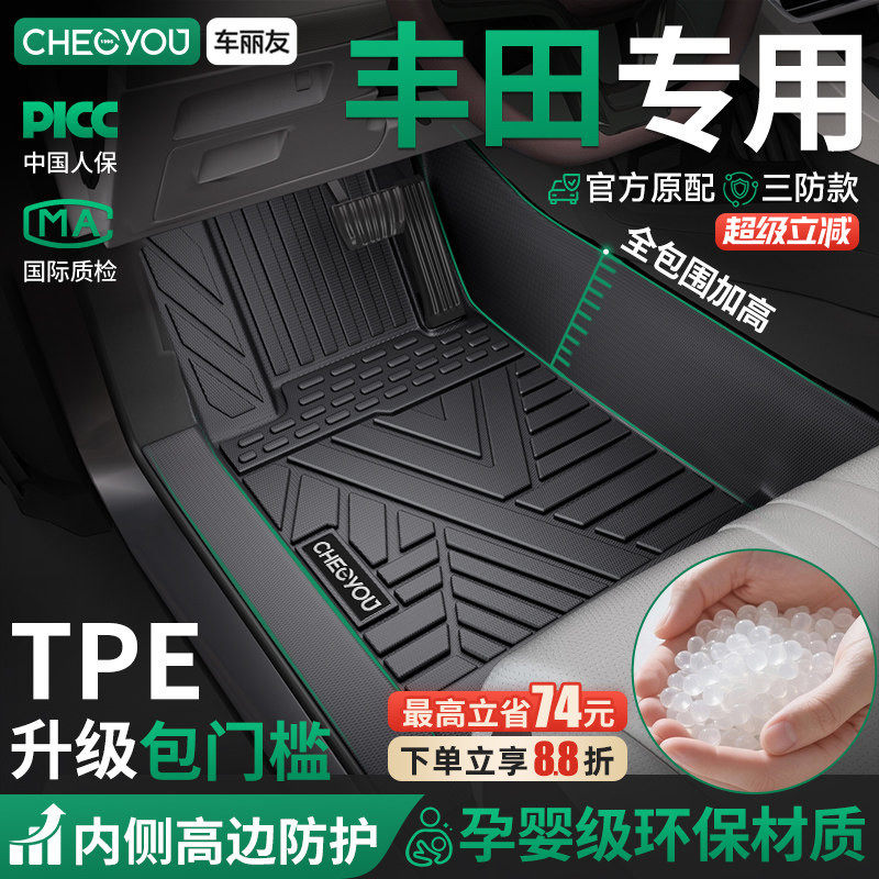 车丽友适用丰田凯美瑞亚洲龙荣放RAV4卡罗拉汉锋兰达锐放TPE脚垫