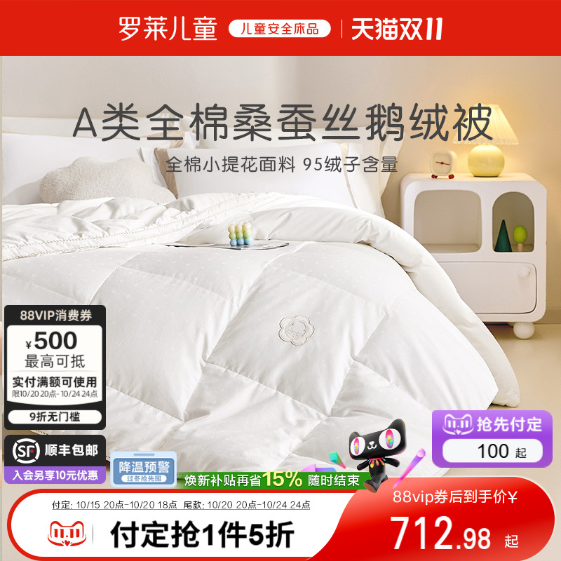 【新品】罗莱儿童A类全棉桑蚕丝鹅绒被羽绒被95白鹅绒四季被冬被