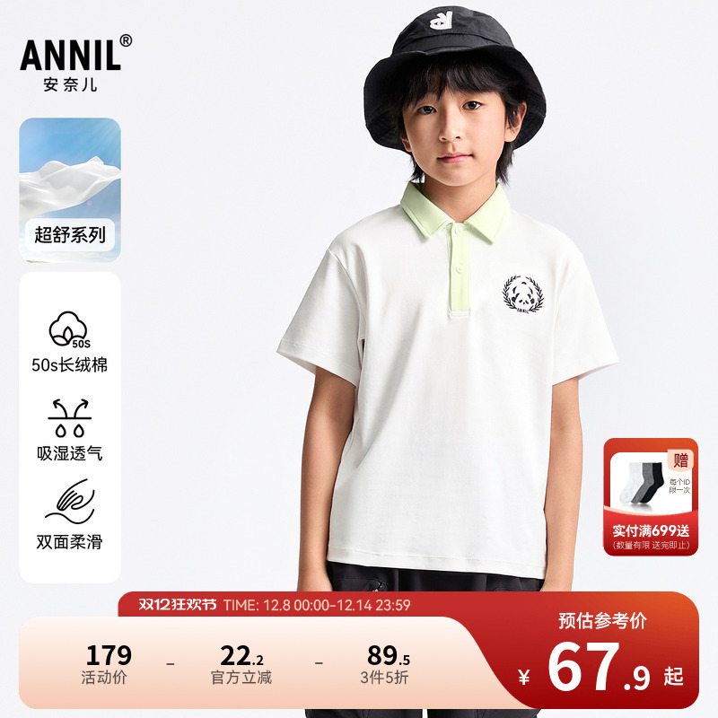 安奈儿童装男童翻领短袖POLO衫2025夏新款吸湿透气纯棉时尚T恤