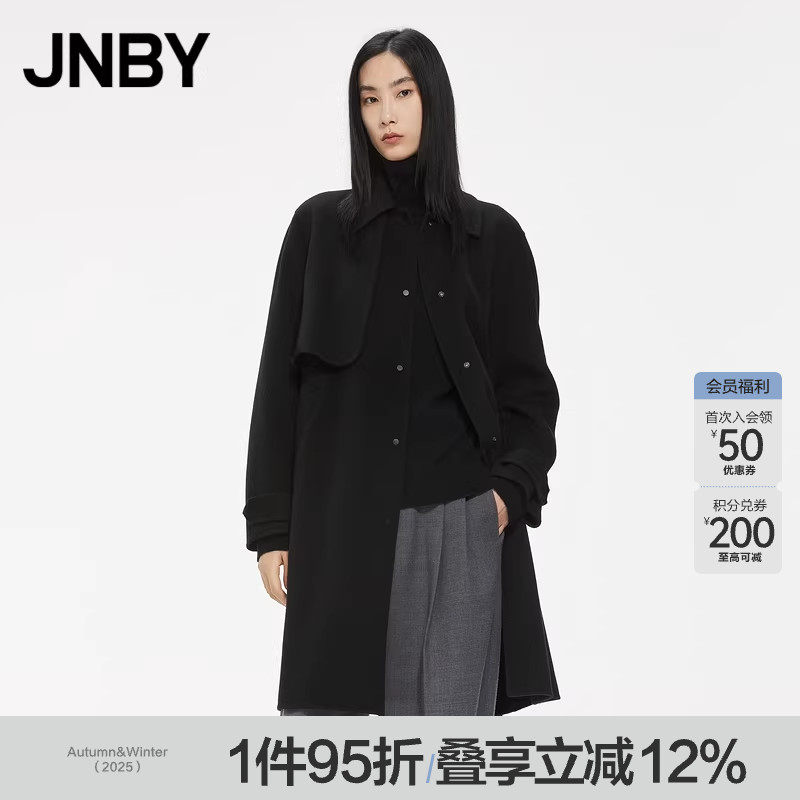 【100%山羊绒】JNBY/江南布衣秋冬双面羊绒大衣女长款休闲呢外套