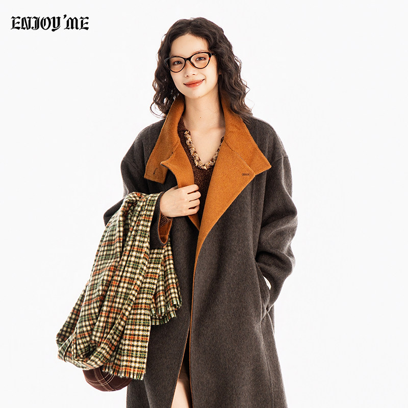 ENJOY商场同款韩版立领双面羊绒大衣女长款冬季气质宽松毛呢外套
