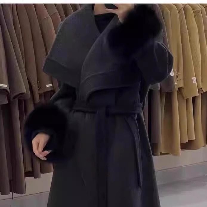 2025新款高端优雅气质真狐狸毛领毛呢外套双面羊绒大衣女长款收腰