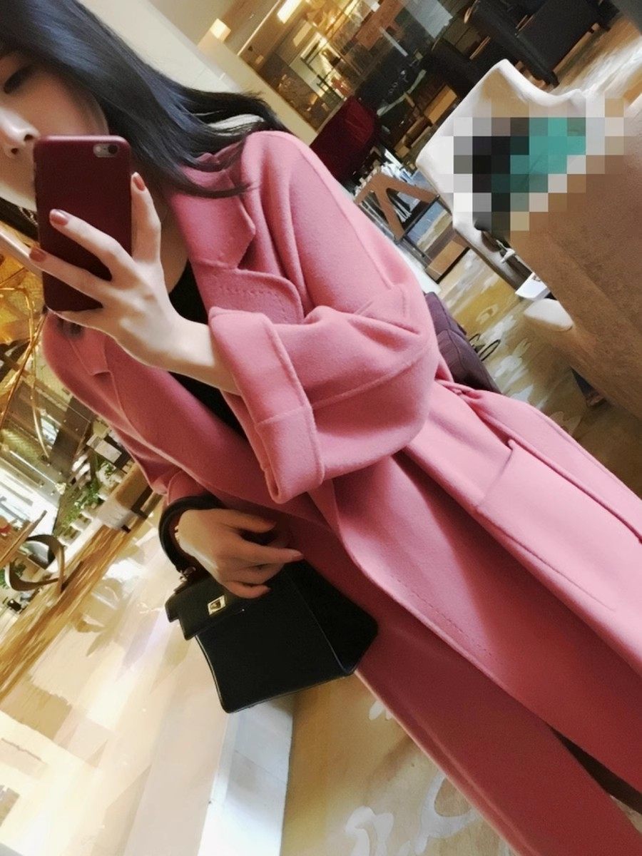 粉色双面羊绒大衣女长款过膝修身显瘦减龄2025新款高端羊毛呢外套